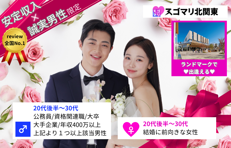 スゴマリ北関東は、会員数104,859、日本最大級の結婚相談所ネットワーク「IBJ」の正規加盟店です。